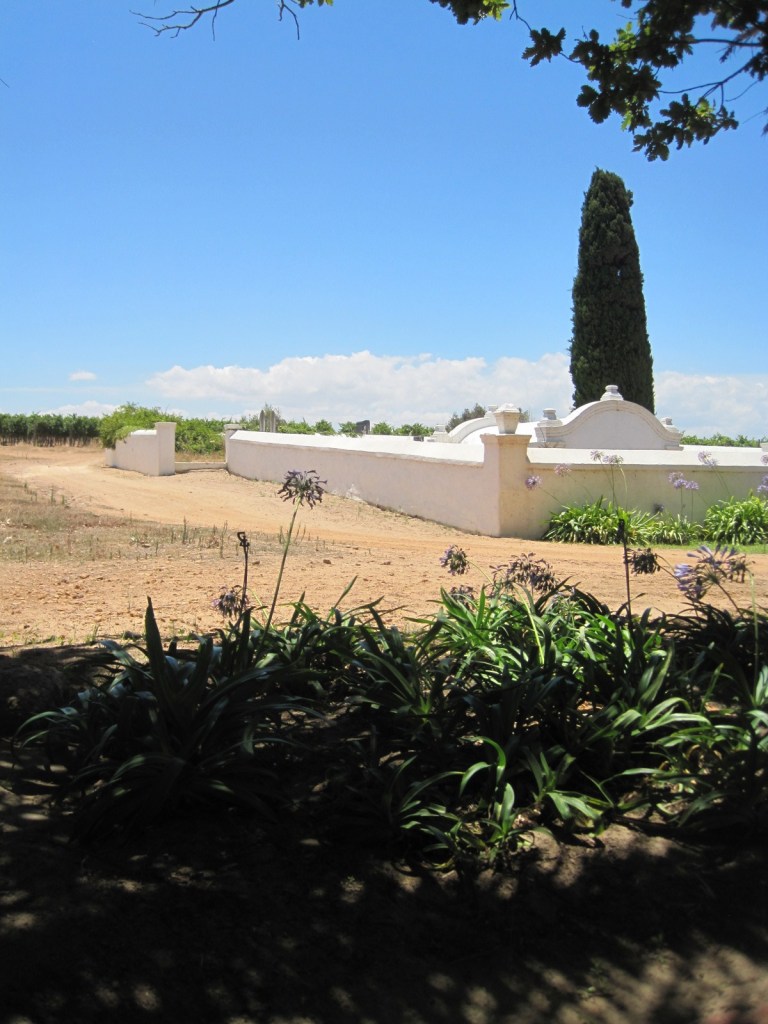 As I leave Meerlust I see, by the side of the drive, the family cemetery. It’s surrounded by a whitewashed wall on land cut out from a vineyard; historically, family members have chosen to be buried here, on land they carved out for themselves, turned into a means of making a living and also made into their home. This is where they chose to remain after death, and it would seem harsh to destroy that identification with their place now.